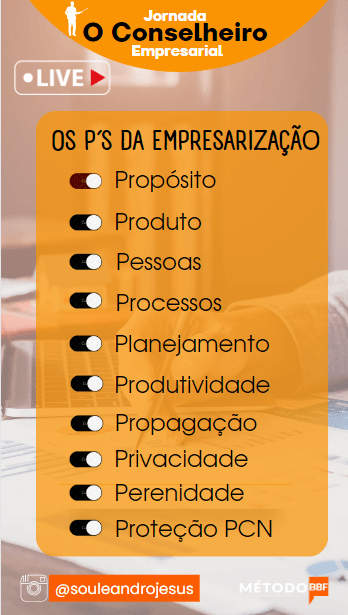 No Método Conselheiro Empresarial, garantimos que você não ficará para trás. Desenvolvemos um Método somando pela Mentoria BBF + MVP completo que o acompanhará em todas as etapas, desde o aprendizado inicial até a implementação prática e o domínio dos temas de Gestão Empresarial, Gestão de Riscos, Compliance, LGPD, Auditoria Interna, Vendas, Mentalidade, etc.