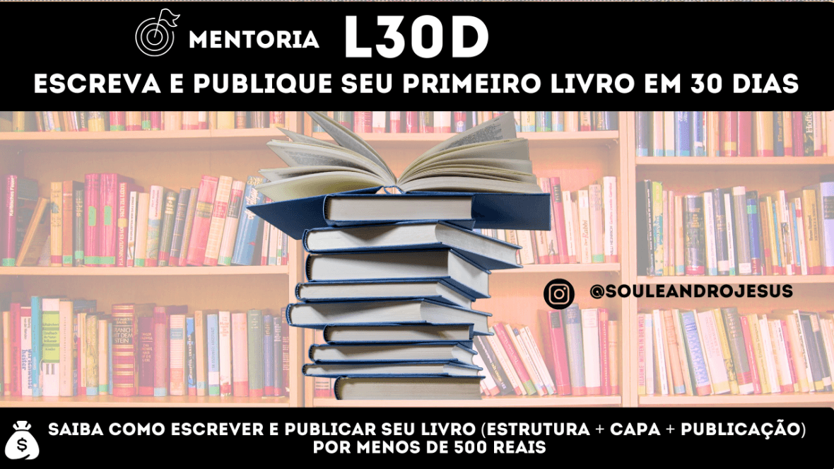 B – MENTORIA L30D – ESCREVA E PUBLIQUE SEU LIVRO EM 30 DIAS: Você terá acesso a aula gravada da Mentoria L30D de como escrever e publicar seu primeiro livro de forma independente. BONUS SOMENTE NO PLANO ANUAL!
